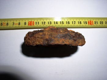 | Das sind vermutlich Splitter von Panzergranaten, es waren damals zwei amerikanische Panzer im Buchwald im Einsatz. |