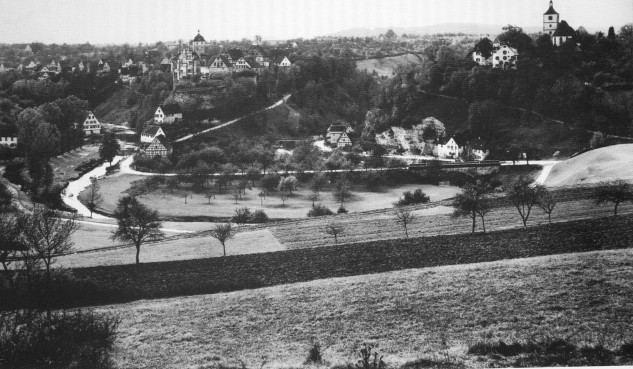 Martinskirche von 1435An ihrer Stelle stand – nachdem etwa um 300 die Kelten den Alemannen wichen – vermutlich eine alemannische vorchristliche Kultstätte, aus der die Franken, als sie nach 500 in das Land drangen, einen Königshof machten. Der Name des erstmals im Jahr 742 urkundlich erwähnten Königshofs Stöckenburg bedeutet nichts anderes, als daß hier eine Befestigung aus Holz stand. Reste wurden nicht gefunden. Eine >>Burg<< in fränkischer Zeit darf nicht mit einer hochmittelalterlichen Ritterburg verglichen werden. Sie sah wesentlich einfacher aus und besaß lediglich Holzbefestigungen. Etwa um die gleiche Zeit wurde die Martinskirche gebaut, die innerhalb des Lagers oder der Festung Stöckenburg lag. Der Hügel ist damit einer der ältesten christlichen Plätze Nordwürttembergs.
